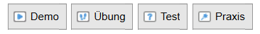 - Übung: Im Übungsmodus können Sie die Lerneinheiten mit Hilfe von eingeblendeten Anweisungen interaktiv durchführen.